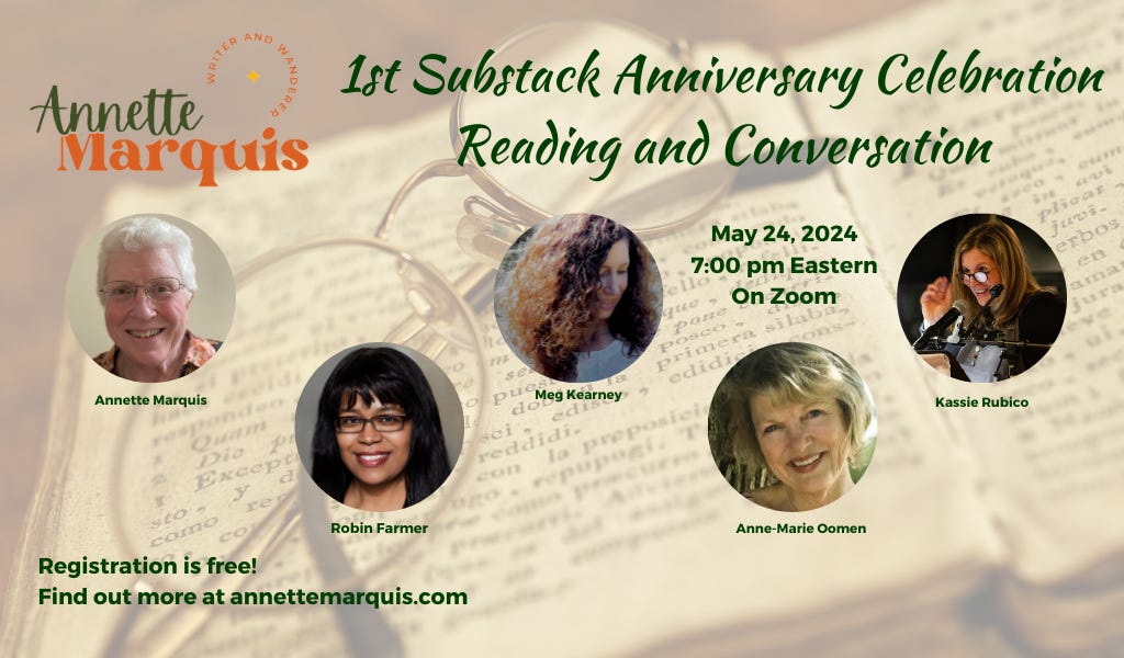 Annette's Wandering's One Year Substack Anniversary Celebration!